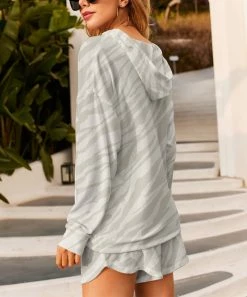 Best Sale ๐ Nanu | Gray & Tan Zebra Hacci-Knit Drop-Shoulder Relaxed-Fit Hoodie – ๐ฉ Women โญ