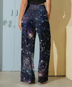 Flash Sale ๐ Nanu | Dark Blue & White Celestial Starry Sky Palazzo Pants – ๐ฉ Women & Plus ๐