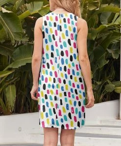 Cheapest ๐งจ Nanu | White & Vibrant Dots Ruched-Neck Sleeveless Tunic ๐ Dress – Plus โจ