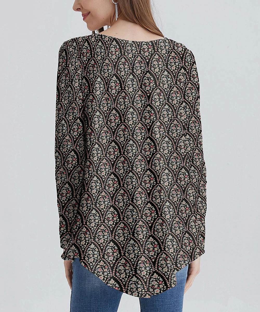 With a flowing hi-low hem and a flattering v-neckline, this long-sleeve tunic lends a stylish staple to your everyday wardrobe.