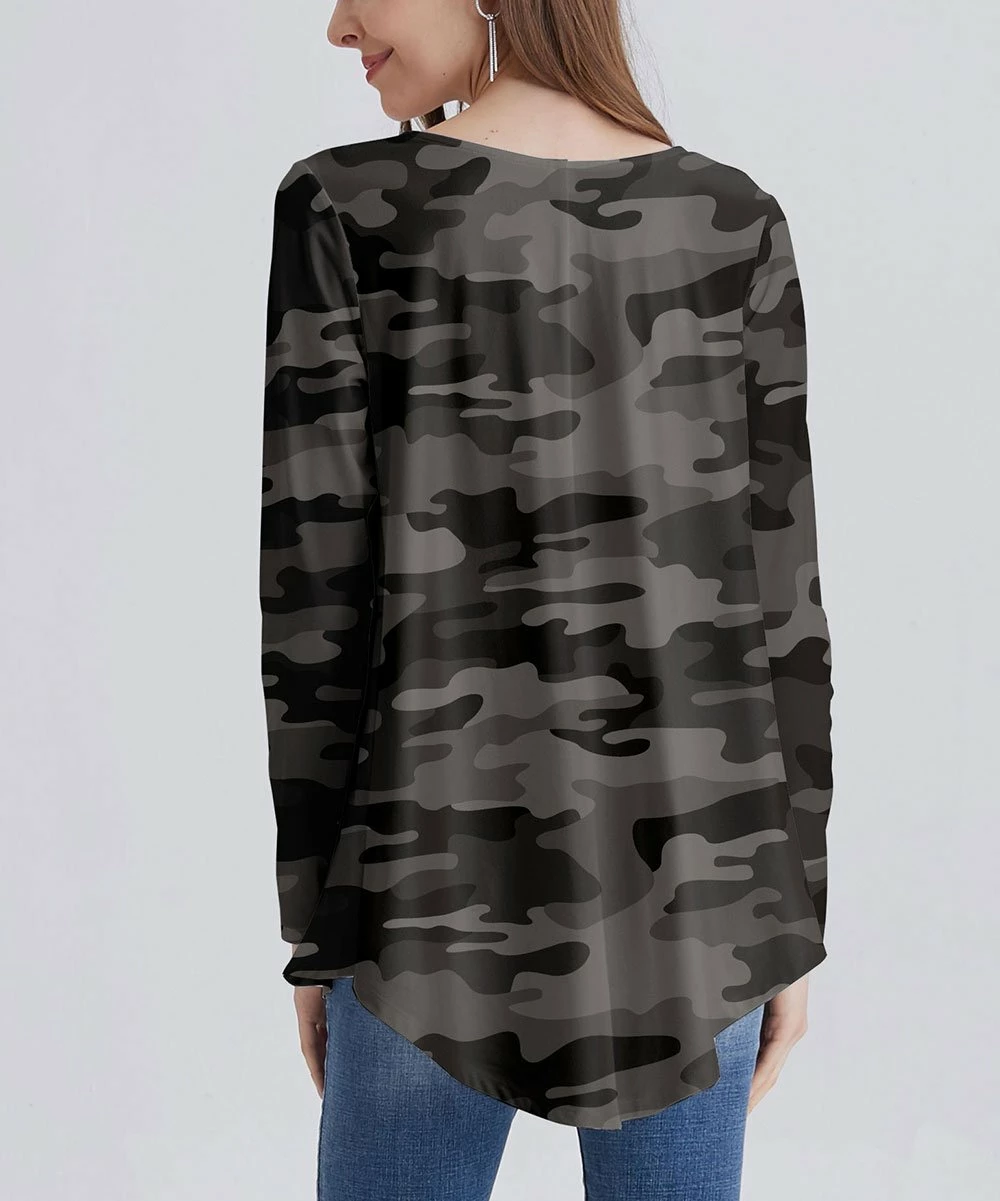 You can step out in style when you’re wearing this long-sleeve tunic that boasts a pleasant print and a v-neckline.