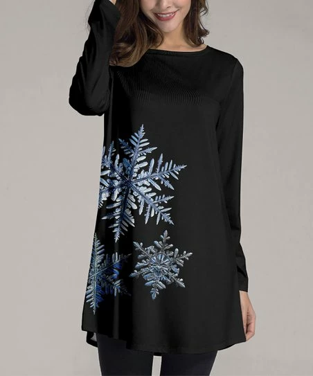 Update your long-sleeve collection with this relaxed tunic that sports a unique print and plenty of comfortable stretch.