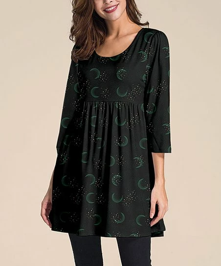 Go ahead and give a twirl in this flowing number, imbued with curve-skimming stretch and featuring a trend-tight three-quarter sleeve.