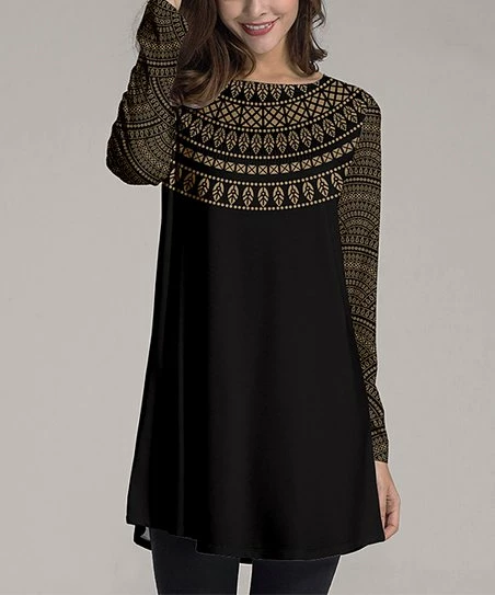 Promo ๐Ÿ”” Nanu | Black & Tan Geometric Long-Sleeve Tunic – ๐Ÿ‘ฉ Women โญ