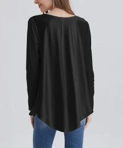 Elevate your casual looks with this stretch-enhanced, v-neck tunic that sports long sleeves and a curved-hem design.