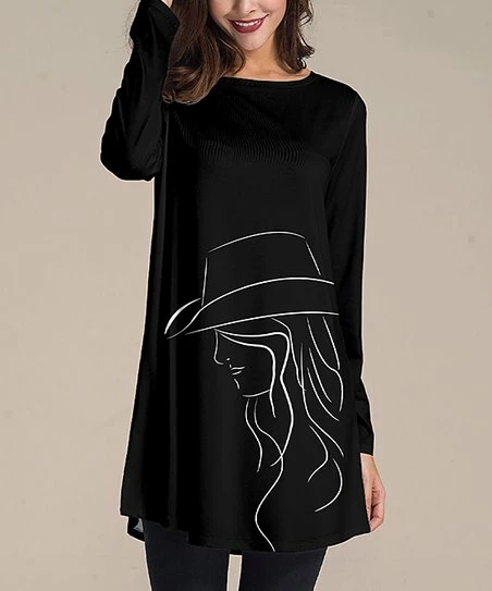 Pair your favorite jeans or skinny pants with this boldly patterned tunic boasting cozy long sleeves and a comfortable dose of stretch.