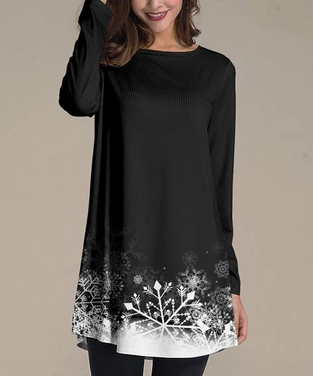 Update your long-sleeve collection with this relaxed tunic that sports a unique print and plenty of comfortable stretch.