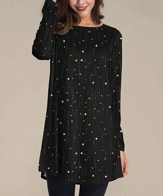 Whether paired with leggings or jeans, this relaxed tunic livens up casual days with its energetic star motif.