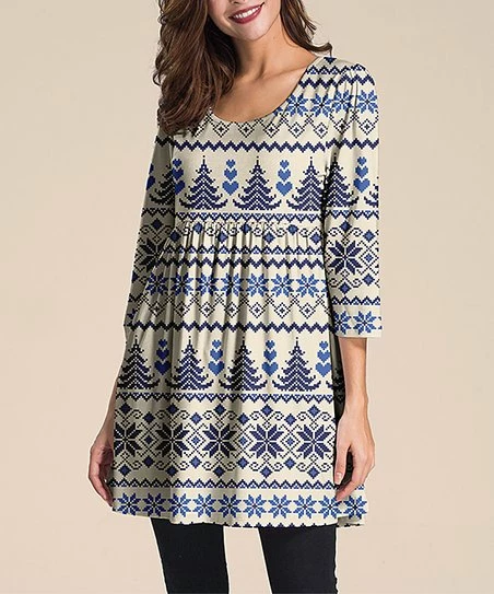 A flowy fit defines this playfully printed tunic that’s crafted from a soft and comfy stretch blend.