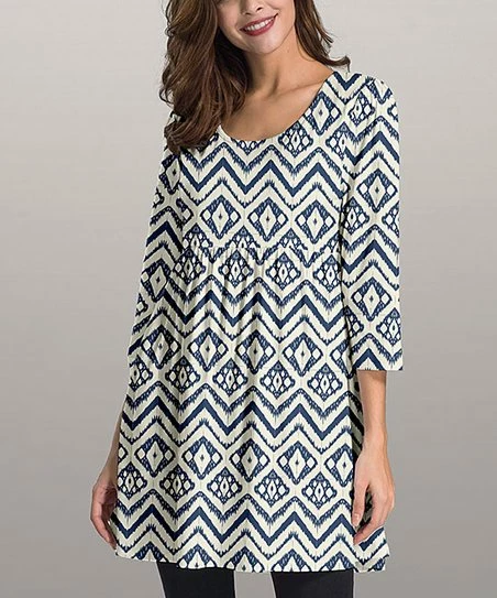 This strech-ready tunic designed with a bold pattern will help you create easygoing ensembles in a snap whether you pair it with leggings or skinny jeans.