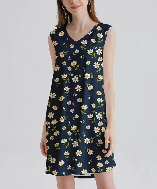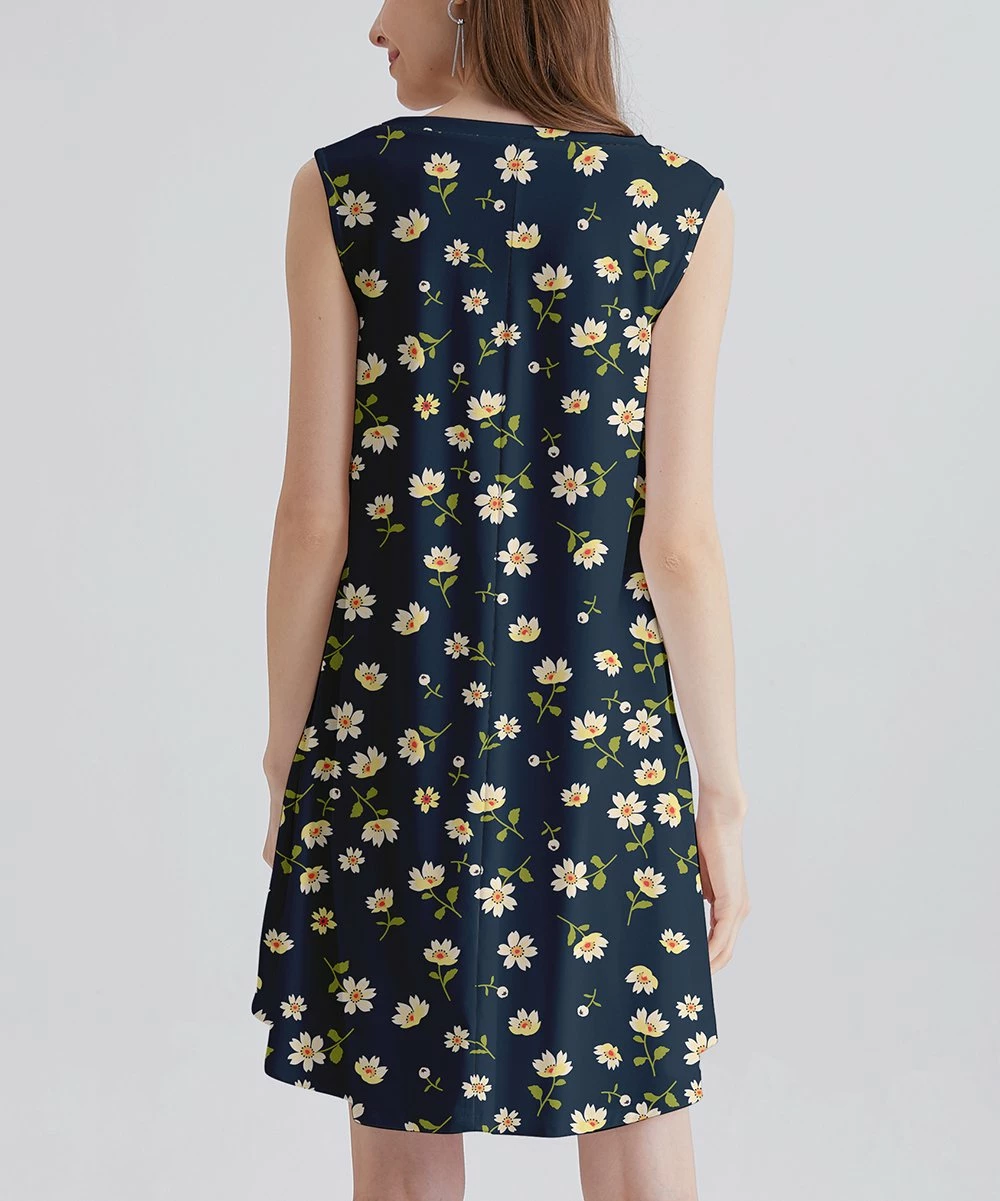 Enjoy warm-weather days in the style and comfort of this sleeveless dress boasting a V-neckline and bold print.