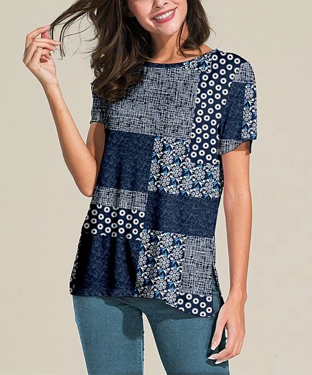 Decked out in a lively pattern, this swinging tunic featuring short sleeves, side slits and lightweight fabric with a hint of stretch will put a smile on your face all day long.