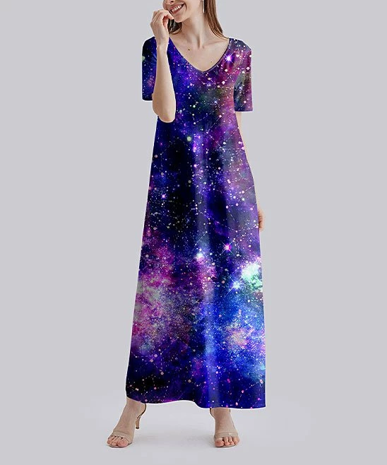 Being busy requires comfort and fuss-free outfits that move with you during your day. This short-sleeve maxi dress features an accessory-friendly v-neckline and bold print made from silky, stretchy fabric to keep you going.