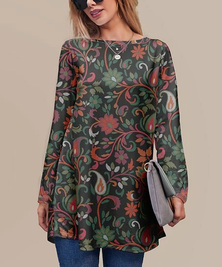 Enliven your wardrobe with the nature-inspired print featured on this long-sleeve tunic cut from stretch-rich fabric for a flowy profile.