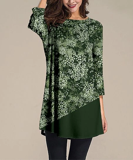 Crafted with stretch-enhanced fabric, this tunic is ready to lend a comfortable touch to your ensemble along with its pop of print and three-quarter sleeves.