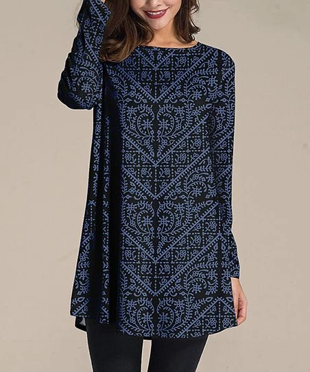 Elevate your jeans and leggings with this cozy long-sleeve tunic designed with a bold print and a relaxed fit with a long, swingy hem.
