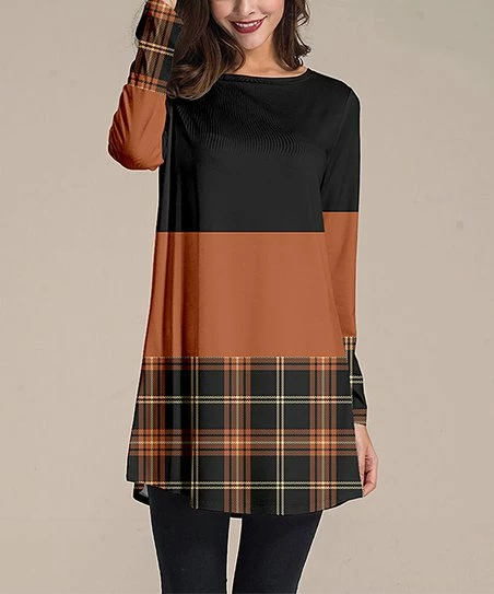Buy ๐Ÿ˜€ Nanu | Orange & Black Plaid Long-Sleeve Tunic – Plus ๐Ÿ˜€