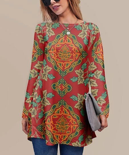 Enliven your wardrobe with the nature-inspired print featured on this long-sleeve tunic cut from stretch-rich fabric for a flowy profile.