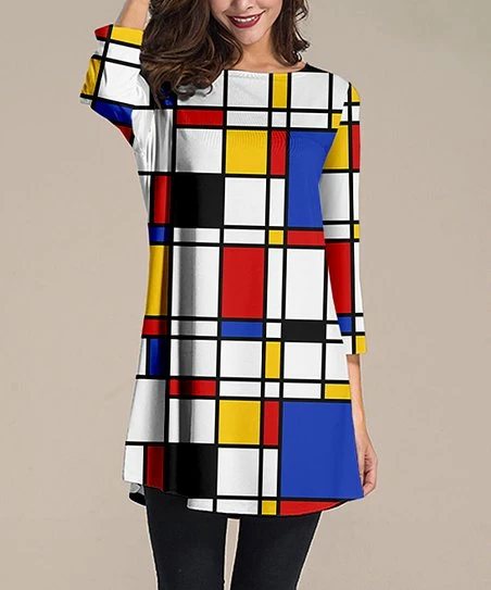 From museum mingling to bustling bistros, this stretch-enhanced tunic keeps you comfortably composed with its breezy, curve-skimming fit and dynamic pattern. Three-quarter length sleeves keep it suitable for season-spanning wear.