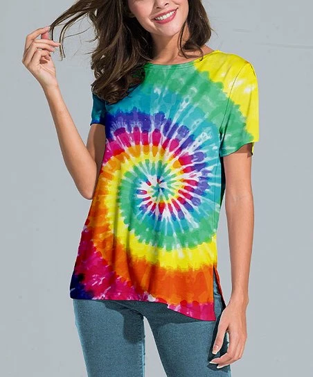 Boost your casual closet with this lightweight tunic featuring a short-sleeved style, a vibrant print and a hint of stretch for added comfort.