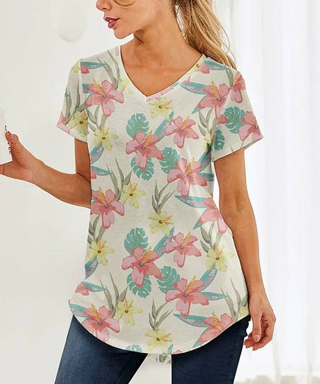 Enjoy daylong comfort in this short-sleeve tee cut from supersoft hacci-knit fabric in a cheerful print. A v-neckline and curved hem bring feminine style to the relaxed design.
