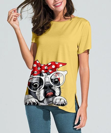 Spruce up your casual closet with this lightweight tunic featuring a whimsical design and stretchy fabric.
