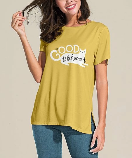 Uplift your look via this short-sleeved tunic fashioned with a fabulous feline graphic that makes a pretty pairing with your favorite denim.